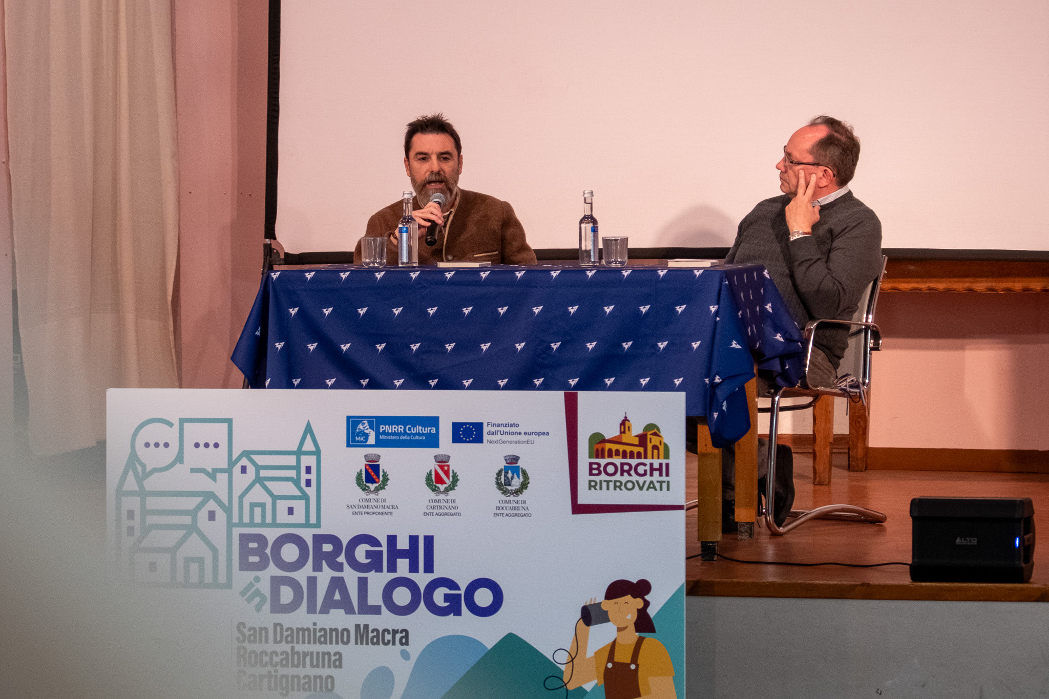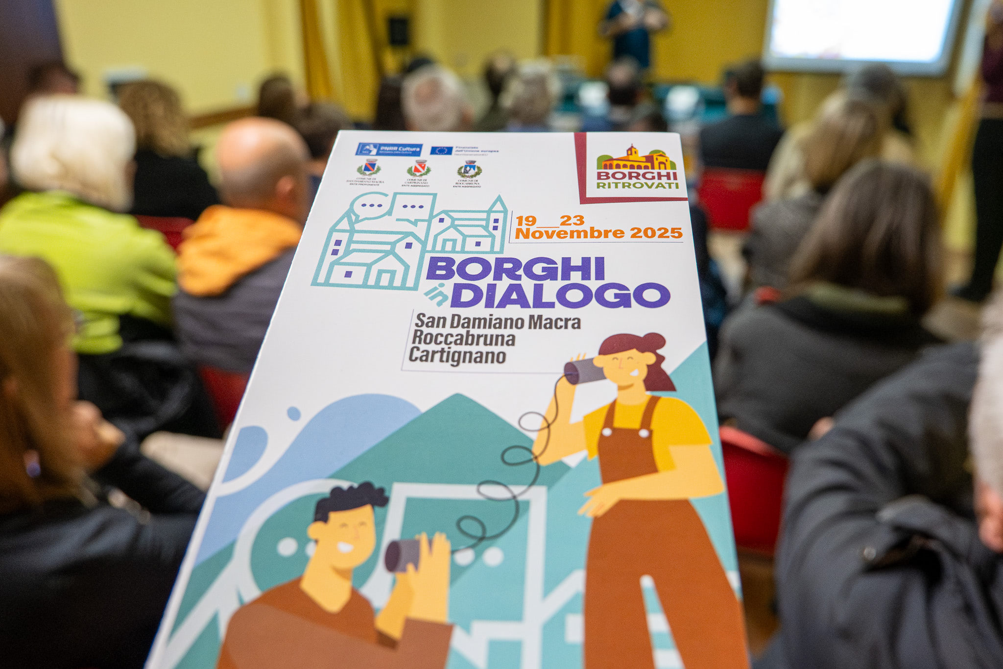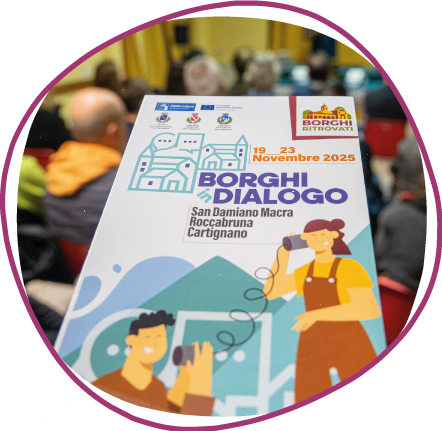 Borghi in Dialogo è un progetto culturale diffuso che ha coinvolto i Comuni di San Damiano Macra, Roccabruna e Cartignano, con l’obiettivo di promuovere occasioni di incontro, confronto e partecipazione all’interno delle comunità della Valle Maira. Il progetto si inserisce nel percorso di valorizzazione culturale e sociale del territorio e si collega idealmente a precedenti esperienze di dialogo e riflessione sviluppate in ambito vallivo.